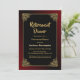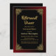 Dîner de retraite noir avec un cadre doré orné avec une bordure extérieure à l'ombre rouge pour compléter le design créant une invitation dynamique pour votre occasion spéciale.