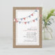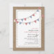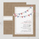 Une invitation décontractée de dîner de répétition de mariage comportant une illustration de l'étamine qui est guingan rouge, beige avec les zigzags blancs, et le bleu avec les points blancs au-dessus d'une conception inspirée par dentelle sur l'avant. L'arrière - plan sur l'avant et le dos est toile de jute inspirée. Personnalisez le texte avec des détails de votre occasion.