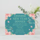 Invitation Dîner du Nouvel An chinois sarcelle floral