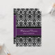 Invitations faites sur commande de dîner de répétition dans le pourpre foncé d'aubergine moderne et élégante, motif floral classique noir et blanc de damassé. Personnalisez le texte pour créer une invitation unique pour votre dîner de répétition de mariage. Contactez-nous pour demander un changement de couleur. Disponible dans beaucoup de produits assortis de mariage.