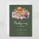 Cette invitation à dîner de Thanksgiving rustique comprend une table pour le dîner de Thanksgiving avec dinde et tous les accessoires, posée sur un arrière - plan vert foncé. L'invitation est simple et élégante, avec la date, l'heure et l'emplacement du dîner dans une police de caractères de bon goût. La table Thanksgiving apporte une touche de chaleur et d'ambiance, l'arrière - plan vert foncé apporte une touche de sophistication. Le design général est parfait pour célébrer les vacances Thanksgiving avec vos proches dans un cadre rustique et confortable.