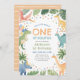 Invitations amis et famille pour fêter le 1er anniversaire de votre petit avec cette invitation à thème dinosaure.