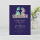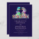 The design includes elegant modern blush pink script typography that’s easy to personalize simply add the bride and groom’s names, wedding date, and all your special details. Set against a rich elegant navy blue background, this invitation blends whimsical dinosaur art with chic modern style.
