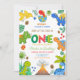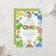 Stomp, Chomp, Roar!! Let's Party Like a Dinosaur! Featuring charming illustrations of friendly dinosaurs and lush tropical leaves, this invitation will set the perfect tone for your event.
