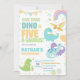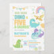 Invitation Dinosaur Five-A-Saurus 5th Birthday Party Pastel