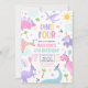 Invitation Dinosaur Four Rose T-Rex 4ème anniversaire