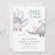 Dinosaur One-A-Saurus 1st Birthday Party Invitation présente un design de dinosaure à l'aquarelle dans des couleurs pastel douces avec le dicton "One-A-Sauraus" ci-dessus. Personnalisez-le avec votre nom Enfants et les détails de l'invitation de fête. Une adorable invitation pour le premier anniversaire d'un bébé !