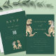 Ce Dinosaur-thème Mariage QR code vert foncé Invitation est un choix ludique mais élégant pour les couples qui partagent un amour pour les dinosaures et veulent insuffler un peu d'humour dans leur papeterie mariage. Doté d'une aquarelle fantaisie illustrant une mariée et un marié en dinosaure T-Rex, le design allie élégance simple et charme léger. L'écriture moderne ajoute une touche contemporaine, assurant que l'invitation reste chic tout en mettant en valeur la personnalité unique du couple. Les modèles faciles d'utilisation rendent la personnalisation sans effort, vous permettant de customiser les détails dans la typographie stylisée en fonction de votre thème mariage. De plus, le code QR inclus donne directement accès à votre site Web mariage, ce qui vous permet de vous connecter facilement à RSVP en ligne. OEuvre originale Créée par l'artiste Catherine Sweetman, ces illustrations uniques capturent l'ambiance amusante et décalée d'un couple amateur de dinosaures tout en préservant une ambiance élégante et raffinée. Parfait pour les couples à la recherche d’une faire-part de mariage unique comme leur relation, ce design apportera des sourires à vos invités et donnera le ton pour une célébration mémorable.