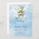 Design doux pour le Baby shower garçon caractéristiques d'eau douce bébé dinosaure sur balançoire dans le ciel bleu. Joueuse écriture de script dire "Oh Baby !" N'hésitez pas à me contacter pour les articles correspondants ou la personnalisation. Impressions violettes ©