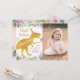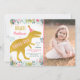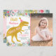 Cette adorable invitation d'anniversaire présente des feuilles d'aquarelle tropicale et des fleurs avec un faux dinosaure de feuille d'or.