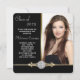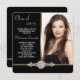 Annonces élégantes de graduation en noir et or. Ce joli faire-part de graduation photo en noir et or est facilement customisé avec votre photo et l'information de l'événement.