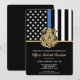 Honorer le dévouement et le travail acharné d'un nouvel agent de l'application de la loi avec cette invitation personnalisée à obtenir un diplôme de police. Doté d'un badge de police et d'un drapeau de la police avec des rayures noires et blanches audacieuses et une fière ligne bleue mince, ce dessin symbolise la force, le service et le sacrifice. L’invitation est personnalisée avec le nom du diplômé en lettres d’or, ce qui en fait un souvenir mémorable pour les amis, la famille et les autres officiers. Parfait pour célébrer un diplôme, une promotion ou un jalon dans la carrière d’un officier de police. Invitation vos invités dans le style et montrer le soutien pour le nouveau membre de la communauté mince ligne bleue.