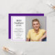Cette invitation classique à la fête de remise de diplômes comprend une photo et un texte personnalisé pour les détails de votre fête de remise de diplômes. Le design est accentué par la couleur violet.