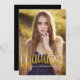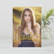 Un design moderne simple et charmant qui présente la photo de votre diplômé sur le devant avec tous les détails de la fête ou de la faire-part sur le dos. Typographie tendance cursive en or avec une touche ludique et féminine. Une façon amusante et magnifique de souligner la célébration de la remise des diplômes de votre fille.