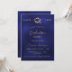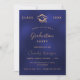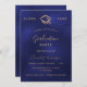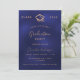 Une invitation moderne et élégante à la remise des diplômes. Un arrière - plan bleu marine, texte doré. La couleur bleue est inégale. Personnalisez et ajoutez un nom, une année et des détails.
