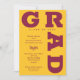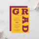 Diplômé en lettres marron gras incurvées autour des bords de ces cartons d'invitation de fête de fin d'études sur fond or jaune. ARTICLES assortis et plus de couleurs dans notre collection.