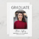 Invitation de Graduation Photo Arc Moderne. Célébrez votre grade avec style grâce à ces invitations modernes à l'obtention du diplôme, avec la photo du diplômé sur le devant à l'intérieur d'une forme d'arc avec nom en écriture, nom de l'école et diplôme gagné. Au verso se trouve l'information pour la grande fête, y compris le script "Elle l'a fait" et les détails de la fête de remise de diplômes pour tous vos invités.