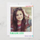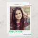 Une invitation à la fête de remise de diplômes de photo avec un arrière - plan blanc. Le dos comprend les détails de la fête de remise de diplômes et une version plus petite de la photo du diplômé. Ajoutez simplement votre photo et vos informations, ajoutez cette invitation à votre panier et célébrez cette réalisation majeure. Fun Colorful Photo Graduation Invitation Graduation classe de 2023 Conception de jour férié | ©Melissa Patton - Designer