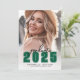 Classic Minimalist Graduation Faire-part & Invitation de fête. L'avant présente une photo pleine page avec un dégradé blanc en bas qui s'efface sans heurts dans l'image. Au-dessus du dégradé, "2025" apparaît dans une police de style classique et audacieuse en vert. Au-dessus de l'année est "Graduate" dans une police de script, qui peut être changé en "Classe de" si préféré. En dessous de l'année, le nom du diplômé et le nom de l'école sont élégamment présentés. Le design actuel utilise les tons noir et vert pour un look intemporel et sophistiqué, mais toutes les couleurs peuvent être customisées pour correspondre aux couleurs de l'école ou aux préférences personnelles. Le dos se transforme en une élégante invitation à la remise des diplômes, avec une deuxième photo centrée à l'intérieur d'un rectangle arrondi. Ci-dessous, il y a de l’espace pour les détails de la fête, comme la date, l’heure, l’emplacement et l’information sur le RSVP, ainsi qu’un message sincère des parents célébrant les réalisations du diplômé. Entièrement personnalisable, vous pouvez ajuster le texte, les polices et les couleurs en fonction de votre style. Parfait pour annoncer cette étape majeure et inviter des proches à célébrer !