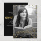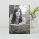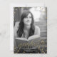 Une invitation moderne d'obtention du diplôme comportant une photo de votre diplômé avec le lettrage et les confettis de manuscrit de regard de parties scintillantes d'or. Le dos peut être utilisé comme invitation à une fête de remise des diplômes, ou être dégagé pour employer juste comme un faire-part.
