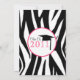 Une invitation unique d'obtention du diplôme comportant une frontière d'impression de zèbre à travers le dessus et le bas avec l'équilibre rose. Texte rose et noir. Personnalisez avec des détails de votre propre événement. Conception solide d'impression de zèbre de caractéristiques de bord opposé. Le texte à l'intérieur du cadre formé par cercle rose lit la "classe de 2011" dans rose et noir avec une illustration d'un casquette noir d'obtention du diplôme. Grand pour la mode expédiez le diplômé. Articles assortis Look for dans la section "de magasin d'obtention du diplôme" du magasin rose d'école.