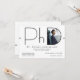 Une invitation moderne pour la remise des diplômes de doctorat en photo avec un schéma en noir et blanc. Fêtez votre doctorat avec cette invitation élégante. Ajoutez simplement votre photo et vos informations, ajoutez cette invitation à votre panier et célébrez cette réalisation majeure. Photo moderne PhD Graduation Invitation Conception de vacances | ©Melissa Patton - Designer