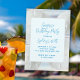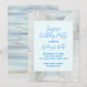 Invitation modèle pour fête d'anniversaire dollars des sables. De grands dollars des sables blancs et des images d'eau scintillante constituent l'arrière-plan d'un texte bleu joli. Le titre "Fête d'anniversaire surprise" et le nom de l'invité d'honneur sont dans une police de caractères cursive moderne. Le reste du texte est dans une police de caractères majuscules amusante. Modifiez facilement tout le texte à votre guise. Le dos du papier comporte une image d'eau. Les couleurs sont bleu clair, blanc, gris. Ce design est également disponible en téléchargement instantané.