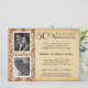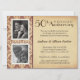 De superbes invitations pour une fête d'anniversaire de 50 ans de mariage avec des encarts encadrés pour deux photos sur un fond parchemin simulé rustique vintage rétro, et une garniture en damas. Téléchargez vos photos et ajoutez les noms, la date et les détails. Modifiez le texte pour le personnaliser facilement pour d'autres occasions spéciales et célébrations d'étapes importantes -- fêtes d'anniversaire surprises de 25 ans, 30 ans, 45 ans, 60 ans, 65 ans, 70 ans, anniversaire, mariage, "save the date", ou tout événement unique. Taille indiquée : Grand -- 21,5 x 22 cm. Cliquez sur Personnaliser pour modifier la taille et les options de finition du papier.