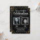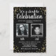 Entrez dans le monde de l'élégance avec nos invitations de fête d'anniversaire conjointes. Avec un fond noir élégant personnalisable selon vos préférences de couleur, des doubles photos, une gerbe festive de confettis dorés brillants et un modèle de double célébration contemporain, ces invitations incarnent parfaitement l'esprit d'une double célébration d'anniversaire. Faciles à personnaliser, elles représentent un croisement unique de style et de commodité difficile à battre.