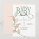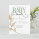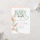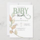 Invitation élégante et botanique pour BABE À BORD avec des feuilles de couleur pêche et mousse. Belle invitation neutre en genre.