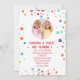 Une invitation à la fête d'anniversaire jumelle neutre pour les femmes. Lumineux et coloré avec un modèle photo pour rendre votre invitation vraiment unique. Il fait partie d'une collection d'approvisionnement de fête d'anniversaire avec des fournitures de fête correspondant.