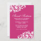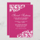 Une élégante invitation à la fête du sweet sixteen rose avec des tourbillons blancs fleurit. Customisez avec les détails de votre fête. Sélectionnez le bouton customiser pour modifier le style, la couleur et la taille de la police.