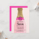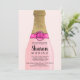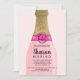 Une bouteille d'illustration moderne, brillante et tendance dessinée à la main, de mousseux à l'élégante feuille d'or chic, de rose pastel et de rose néon. Ajouter les monogrammes ou initiales de la mariée et du marié. C'est l'heure d'un brunch et d'une douche à bulles !