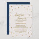 Cette carte d'invitation à la douche en lingerie pois dorée est parfaite pour une élégante douche nuptiale. Le design simple présente des confettis d'or chic sur un arrière - plan de champagne crémeux avec une belle calligraphie fausse feuille d'or et un fond bleu marine. Remarque : Ce design ne comporte pas de véritable feuille d'or. C'est un graphisme de haute qualité fait pour ressembler à du papier doré.
