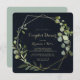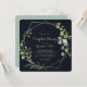 Cette invitation à la douche aux couples bleu or géométrique est parfaite pour une wedding shower simple. Le design présente de beaux feuilles verts peints à la main dans un arrière - plan bleu foncé, ornant un cadre géométrique doré.