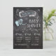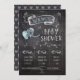 Célébrez l'arrivée prochaine de votre petit paquet de joie, avec ce tableau que vous êtes invités à une invitation de baby shower, comportant un éléphant de bleus layette sonnant de la trompette au sujet de l'événement. Ajoutez où, quand et les détails dans le simple pour utiliser le modèle ont fourni. Une invitation mignonne et espiègle avec un coeur blanc de craie répétant le motif sur le dos