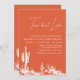 Invitation de douche de couple à propos d'amour de taco de paysage occidental moderne à la couleur du coucher de soleil de Vérone avec un désert occidental blanc cassé et une police de calligraphie moderne mono-ligne.