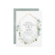 Invitation de douche de couple aux nuances de vert avec cadre géométrique doré et revers eucalyptus argenté de la forêt sauvage et du bois herbier.