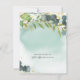 Cartons d'invitation de douche de mariée de mariage moderne avec un lavis aquarelle vert/bleu poussiéreux, des feuilles botaniques vertes élégantes, des éclaboussures de faux foil doré et un modèle de fête de douche de mariée simple qui est facile à personnaliser.
