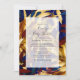 Invitation à une douche de mariée ou de bébé en voiture avec un motif de jungle luxuriant dans des tons de bleu, de bordeaux et d'or.