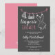 Une typographie moderne, joli chic et mignon ligne de vêtements rose et blanc et gris avec sous-vêtements, corset, soutien-gorge et culotte lingerie douche nuptiale invitation avec une typographie calligraphie moderne et élégante.