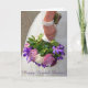 Jeune mariée tenant la belle carte de voeux florale de douche de bouquet de roses. Masquez l'intérieur pour votre propre message.