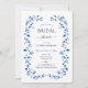 Elégante et simple aquarelle Delft Bleu et blanc fleurs et vignes Invitation douche nuptiale.