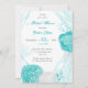 fleurs romantiques turquoise et blanche sur une belle invitation à la douche nuptiale à cadre géométrique. Les détails de la parties scintillant sont simulés. Il convient aussi bien pour les soirées nuptiales que pour les baby showers.