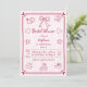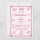 Bracelet blanc et rose dessiné à la main, rétro style mariage français, style rétro, douche nuptiale Invitation. Une invitation ironique et fantaisiste qui présente des illustrations dessinées à la main de plusieurs doodles whimiscaux dont les coeurs, un anneau et un arc en magenta sur arrière - plan rayé rose clair et blanc. La police manuscrite et le cadre avec les coeurs aux coins ajoutent une touche délicieuse, reflétant parfaitement la joie et l'excitation de votre fête de la douche nuptiale.