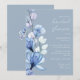 Cette élégante invitation à la douche nuptiale florale transparente bleu poussiéreuse peut être personnalisée avec vos informations en typographie chic avec votre monogramme au verso. Conçu par Thisisnotme©