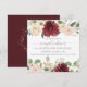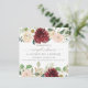 Cette invitation est conçue pour une fête de mariage pour couples. Des fleurs d'automne à l'aquarelle peintes à la main comprennent un chrysanthème rouge burgundy marsala avec des roses blanches rosées et un ranunculus rose pâle combinés avec diverses brindilles, feuilles et baies. Le fond est blanc (mais peut être modifié). Si modifié, la zone de texte restera blanche. Au verso se trouve un motif doux de vin burgundy marsala (qui peut également être modifié) avec un élément de couronne de saule marsault. LA COLLECTION COMPLÈTE PEUT ÊTRE TROUVÉE ICI (copiez et collez le lien dans votre navigateur : https://bit.ly/2MAf83r ) Droit d'auteur artistique Audrey Jeanne Roberts, tous droits réservés.