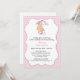 Une invitation douce de douche pour une fille avec le bébé avec la bouteille tenant le parapluie sur le cadre élégant avec l'arrière - plan rose et blanc de point de polka. Quelques graphiques par Cheryl Seslar conçoit, www.digiwebstudio.com