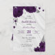 élégante romantique fleurs royales violet et gris argent feuille botanique luxe nuptiale invitation
