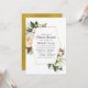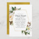 Invitation à la douche à bébé ou à la nuptiale à longue distance florale avec des pivoines roses, des herbes sauvages, du coton et des lys avec cadre géométrique doré personnalisable selon les caractéristiques de votre événement.